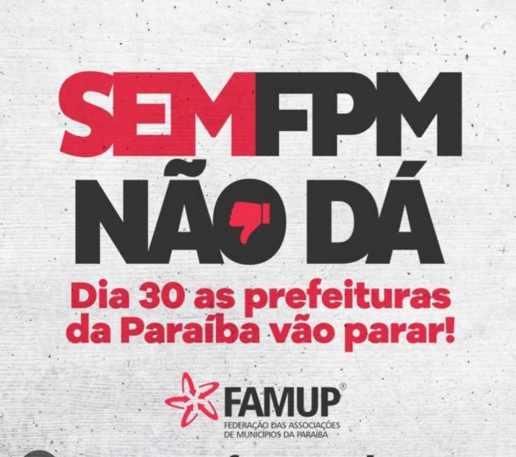 Nesta quarta-feira (30), a Prefeitura de Pitimbu vai aderir à paralisação nacional, proposta pela Federação das Associações de Municípios da Paraíba (Famup) e que conta com apoio da Confederação Nacional dos Municípios (CNM) e Federação. O objetivo do ato, denominado “Sem FPM não dá, as prefeituras vão parar”, é cobrar do Governo Federal o compromisso de aumentar os repasses às administrações municipais que sofrem com as oscilações negativas do Fundo de Participação dos Municípios (FPM).