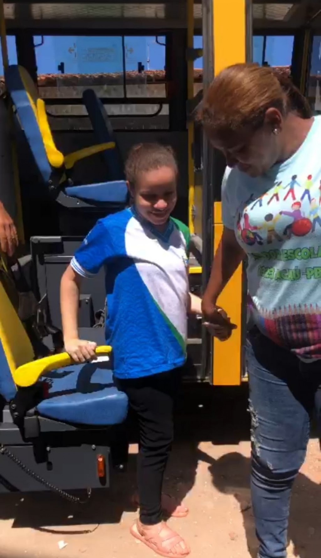 "Para garantir que todos os alunos tenham acesso à educação, a prefeitura também disponibiliza transporte público escolar com acessibilidade, permitindo que os alunos com deficiência cheguem à escola com facilidade e segurança", disse a secretária. Na foto, a aluna conta com o suporte da cuidadora Henriqueta Daria na EMEF Celerino Francisco de Menezes, no Distrito de Acaú.
