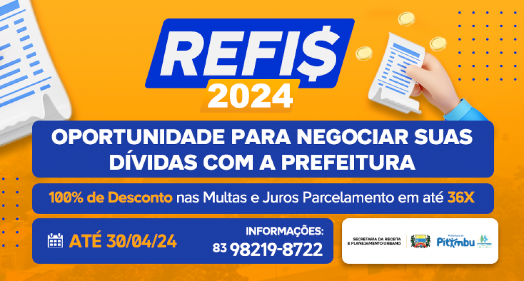 A Prefeitura Municipal de Pitimbu divulgou, nesta segunda-feira (26), as disposições do Refis 2024, implementado por meio do Decreto Municipal N.º 108, do dia 23 de Fevereiro de 2024.Uma das principais novidades deste ano é a ausência de um limite de valor para as dívidas a serem regularizadas. Além disso, o programa possibilita o parcelamento em até 36 vezes do valor principal atualizado, com uma redução significativa de juros e multas, chegando a 100% de desconto para pagamento à vista.